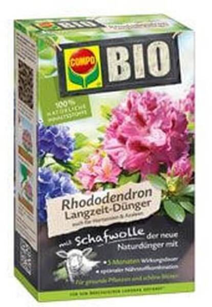 Compo Bio hosszúhatású rododendrontrágya báránygyapjúvalSZERVES NPK-TRÁGYA 5+4+6, AMELY 50% BÁRÁNYGYAPJÚT TARTALMAZ Egyedülálló és tisztán szerves, természetes trágya bármilyen fajtájú rododendronhoz, hortenziához, azáleához és többek között mocsári növényekhez. Azonnali és 5 hónapos hosszantartó hatás. A vízraktározó képesség jobb vízellátást biztosít a szárazság jellemezte időszakokban. A duzzasztó hatás révén laza lesz a talaj szerkezete. Egészséges növényeket és bő virágzást eredményez. A szerves NPK-trágya 5+4+6 alacsony kloridtartalommal rendelkezik, 50% báránygyapjút tartalmaz. Egyedülálló, tisztán szerves, természetes trágya bármilyen fajtájú rododendronhoz, hortenziához, azáleához és többek között mocsári növényekhez. A trágya idényenként egyszeri alkalmazása 5 hónapra biztosítja a növények tápanyagellátását. A pelletált trágya speciális vízraktározó képességgel rendelkezik. A felhasznált nyersanyagoknak köszönhetően kiválóan alkalmas ökológiai termelésre. MITŐL OLYAN KÜLÖNLEGES A BÁRÁNYGYAPJÚT TARTALMAZÓ, ÚJ COMPO BIO HOSSZÚ HATÁSÚ TRÁGYA? A báránygyapjút tartalmazó, új COMPO BIO hosszú hatású trágya igazi termékújítás. Tisztán szerves trágya. 50% báránygyapjút tartalmaz, amelyet rendkívül összetett feldolgozási eljárás során azonnal felvehető, más szerves összetevőkkel együtt préselnek pellet formájú trágyává. A trágya egyszerre rendelkezik természetes azonnali és 5 hónapon át tartó, hosszú távú hatással. Idényenként egyszeri alkalmazása elegendő ahhoz, hogy optimális ellátást nyújtson növényeinek. A COMPO BIO hosszú hatású trágya ezenkívül kiváló vízraktározó képességgel rendelkezik. A báránygyapjúnak köszönhetően nagyon jó a vízfelvevő képessége. A pelletek megduzzadása fellazítja a talajt és elősegíti humuszos talaj képződését. Sőt, a szárazság jellemezte időszakokban jóval hosszabb ideig biztosítja növényei vízellátását. MIKOR HASZNÁLJUK A TRÁGYÁT? Jan. Febr. Márc. Ápr. Máj. Jún. Júl. Aug. Szept. Okt. Nov. Dec. MENNYI TRÁGYA SZÜKSÉGES?Meglévő növények Alkalmazandó mennyiségRododendron 100 - 150 g / m?Hortenzia, azálea 100 g / m?Fürtös áfonya, tőzegáfonya 40 - 60 g / m?Újonnan ültetett növények Alkalmazandó mennyiségRododendron 70 g / m?Hortenzia, azálea 70 g / m?HASZNÁLATI ÚTMUTATÓ Jól (3-4 cm mélyen) dolgozza bele a földbe a trágyát. Újonnan ültetett növények esetében közvetlenül az ültetőgödörbe szórja a trágyát. A növény kiadós öntözést igényel minden trágyázást követően. Viseljen munkakesztyűt és trágyázás után mosson kezet!TÁROLÁS 6°C és 35°C közötti tartományban, napfénytől védett helyen tárolandó.