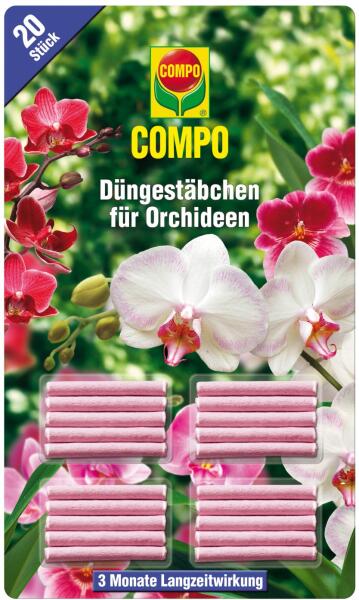 A Compo orchideatáprúd EK-engedéllyel rendelkező trágyázószer. NPK-trágya, amely formaldehid-vizeletanyagot tartalmaz, N + P2O5 + K2O (+ MgO), 8 + 10 + 13 (+ 3) nyomelemekkel. Egyszerű és biztos tápanyag-utánpótlás minden orchidea-fajtához. Az összes fő nyomelemet tartalmazza, kíméletesen ható anyagai és 3 hónapon át tartó hatást biztosít a pompás virágokért és az erős levelekért. Különösen praktikus. Alkalmazási időszak: márciustól októberig. Tartalma: 20 db rudacska
