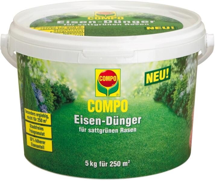 A 30 % vasgálicot tartalmazó Compo vastápsó speciális ápolószer a mohos problémás gyepfelületek számára. Biztosítja a gyep intenzív tápanyag-ellátását a mélyzöld gyepfelület és a talaj javításának érdekében a vasnak, mint fontos nyomelemnek köszönhetően. Pormentes és rendkívül hatékony, mivel a hasonló szerekhez képest 50%-kal több vasat tartalmaz. Alkalmazási időszaka: márciustól szeptemberig. 5 kg vastápsó 250 m2-re elegendő.