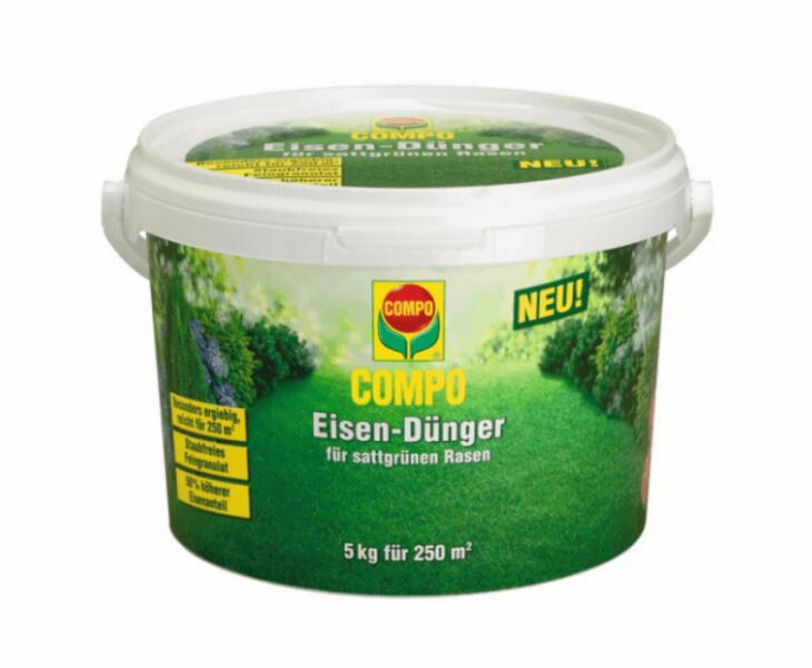 Compo vastápsó 5 kg A vas fontos nyomelem, használatának köszönhetően a gyep és a talaj minősége javul. A vas használatával növényeink színe élénkebb és erőteljesebb lesz. A levelek zöldebbek és egészségesebbé válnak.   EK műtrágya. Felhasználható: március - szeptember Tápanyag összetétel: ásványi tápsó, 30% Fe vízoldható vas = ca. 81% Fe-II-SO4 Mikor ajánlott: kisárgult, vizes, árnyékos gyepre megfelelő. Kétszeresen erősíti a gyep növekedését. Adagolás: 5kg = 250m2 felületre elegendő
