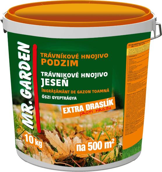 Mr. Garden Őszi gyeptrágya erősíti a gyepet a téli időszak előtt, így növeli az ellenálló képességét a faggyal és a hópenész kialakulásával