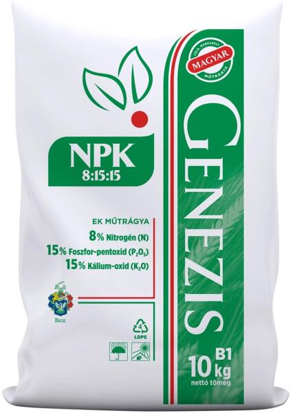 Bármely kiskerti kultúrában, zöldségfélék/gyökérzöldségek, saláta és egyéb vetemények, gyümölcsök, gyep fej- és alap-trágyázásra kiválóan alkalmas, azonnali hatása miatt. Növeli a termés mennyiségét, biztosítja a dús, erős gyökérzet kialakulását, javítja az ellenálló képességet a kultúrának, de zöld színt és harmonikus tápanyagellátást is biztosít. Adagolás: 10 kg egyenletes kiszórása 300-400 m2-re javasolt. Összetétel: NPK 8-15-15 EK Műtrágya.