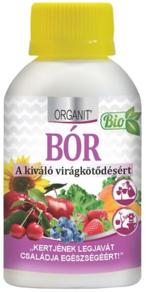 MIBEN NYÚJTHAT MEGOLDÁST A TERMÉKÜNK: A bórt a növények a talajból bórsav illetve borátok formájában veszik fel. A felvétel után a bór a növényben lassan mozog. Ez az oka annak, hogy a hiánya elsősorban a hajtáscsúcsokon és a termékenyülés időszakában jelentkezik. Ezért fontos, hogy a növények még időben a hajtásképződés és a termékenyülés előtti időszakban megkapják a megfelelő bór mennyiséget. Hiánya számottevő termés kiesést okozhat. A termékben megtalálható bór segíti a növényekben a szénhidrátok és a cukrok szállítását, a virágok képződését és megtermékenyülését, a stresszhelyzetek (pl. szélverés, homokverés, jégverés, nagy hőingadozások, hideg periódusok) ó átvészelését, növeli az olajos növények olajtartalmát, valamint javítja a növények vízmérlegét. A bór stimulálja a generatív folyamatokat, a pollentömlő hajtását és fejlődését, fokozza a sejtfal stabilitását, és ez által elengedhetetlenül szükséges a növények életében. Hiányában csökken a megtermékenyülés, akadályozott a kötődés. Esszenciális mikroelem lévén jelenléte valamennyi kultúra számára létfontosságú, különös tekintettel a szőlő- és gyümölcskultúrákra, az olajos növényekre és egyes zöldségfélékre. Tápoldatozásra: 0,1-0,5 %-os töménységben (1-5 liter/1000 liter víz) Házikertben: 1-2 %-os töménységben (1-2 dl/10 liter víz) Használat előtt felrázandó! Tárolás: fagymentes, hűvös, napfénytől védett, száraz, jól szellőző helyen. Amennyiben más levéltrágyával, vagy növényvédő szerrel juttatja ki, keverési próbát kell végezni! Előnyei: Az Organit Bór egy 100 %- ban magyar gyártású speciális tápoldat, amely természetes formában tartalmazza a növények számára nélkülözhetetlen Bórt. Magas bór tartalmának köszönhetően, segíti növényei virágzását, kertje élénkebb, szebb lesz. Használatával növényei könnyebben átvészelik a csapadékhiányos időszakokat. Növeli az olajos növények olajtartalmát. Használata során nincs munkaegészségügyi várakozási idő. Használata Permetezéssel Gyepek, Pázsitok: a tavaszi első fűnyírást követően 2-4 hetente 20 ml/10 liter víz. Almatermésűek: virágzás előtt 2 alkalommal, majd ősszel lemosó permetezés mellé. 20 ml/10 liter víz. Csonthéjasoknál: virágzás előtt 2 alkalommal, majd ősszel lemosó permetezés mellé. 20ml/10 liter Zöldségfélék: ültetés után 2-3 héttel, virágzás előtt két alkalommal 20ml/10 liter Szőlő: virágzás előtt 2 alkalommal, majd ősszel lemosó permetezés mellé 20 ml/10 liter víz. Rózsák, virágzó növények: április közepétől havi rendszerességgel 20 ml/10 liter víz. A permetezés során mindig biztosítsunk megfelelő száradási időt a levél felületén. Ezért célszerű a permetezést az esti órákban végezni. Használata beöntözéssel: Balkonnövények (zöldségfélék, muskátli, petúnia, nyári virágok): A kiültetést követő negyedik héttől 2-4 heti rendszerességgel 1dl/10 liter öntözővíz.